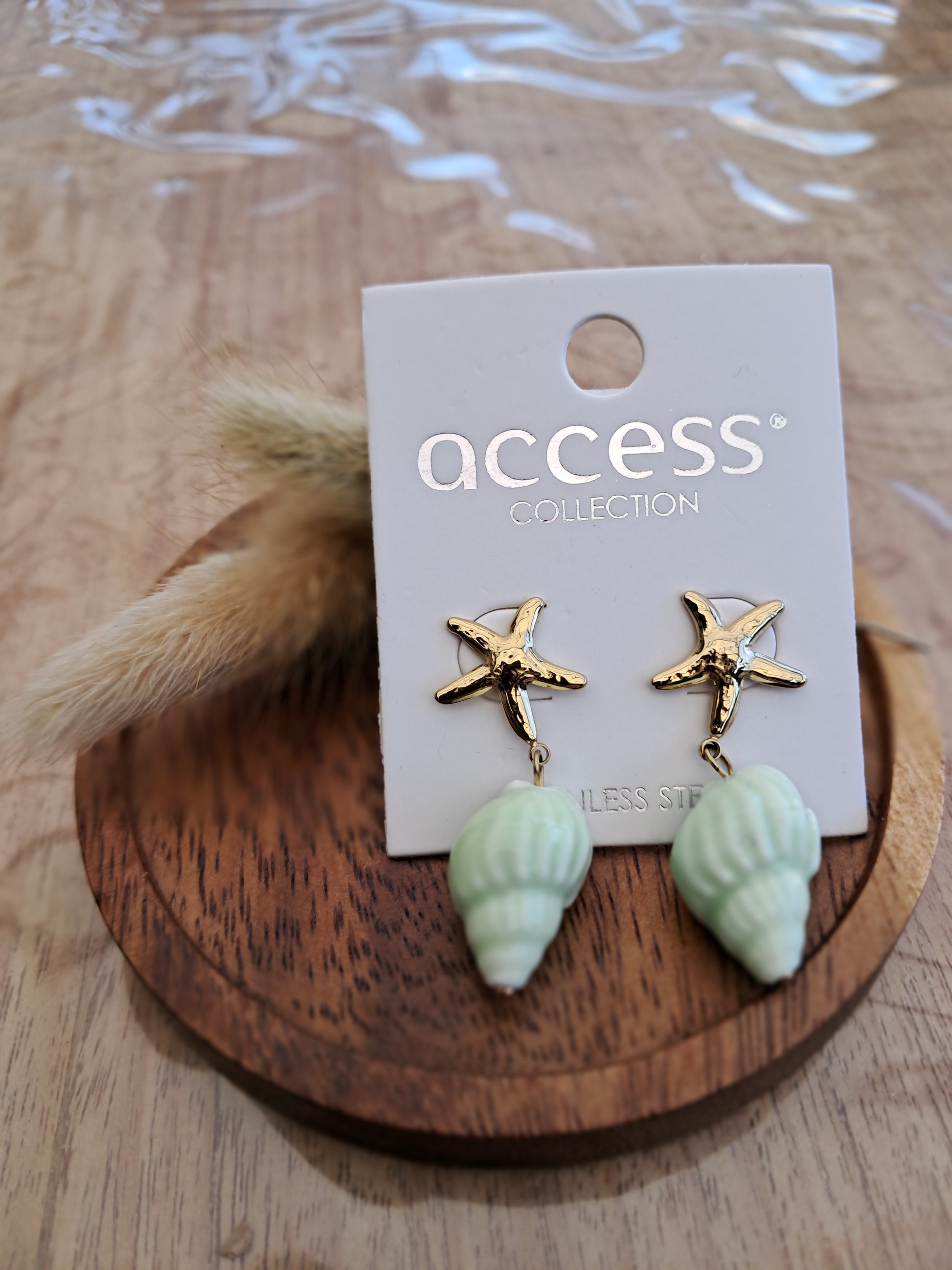 Oorbellen kleine zeesterren met mintgroen schelpje NR 73