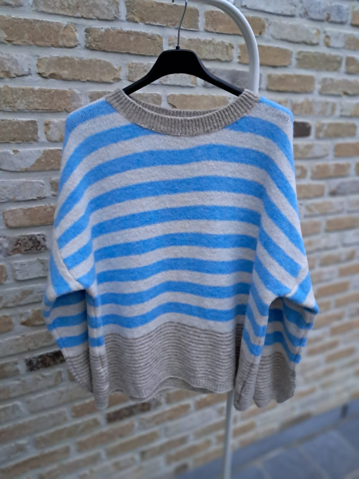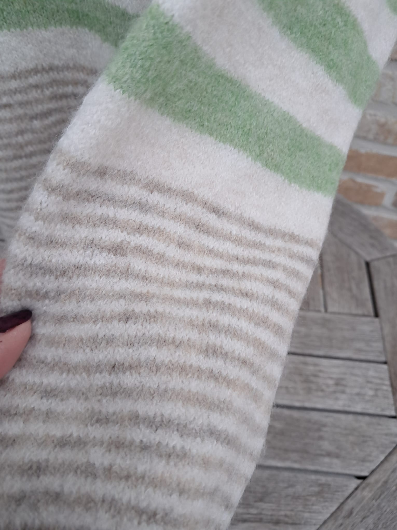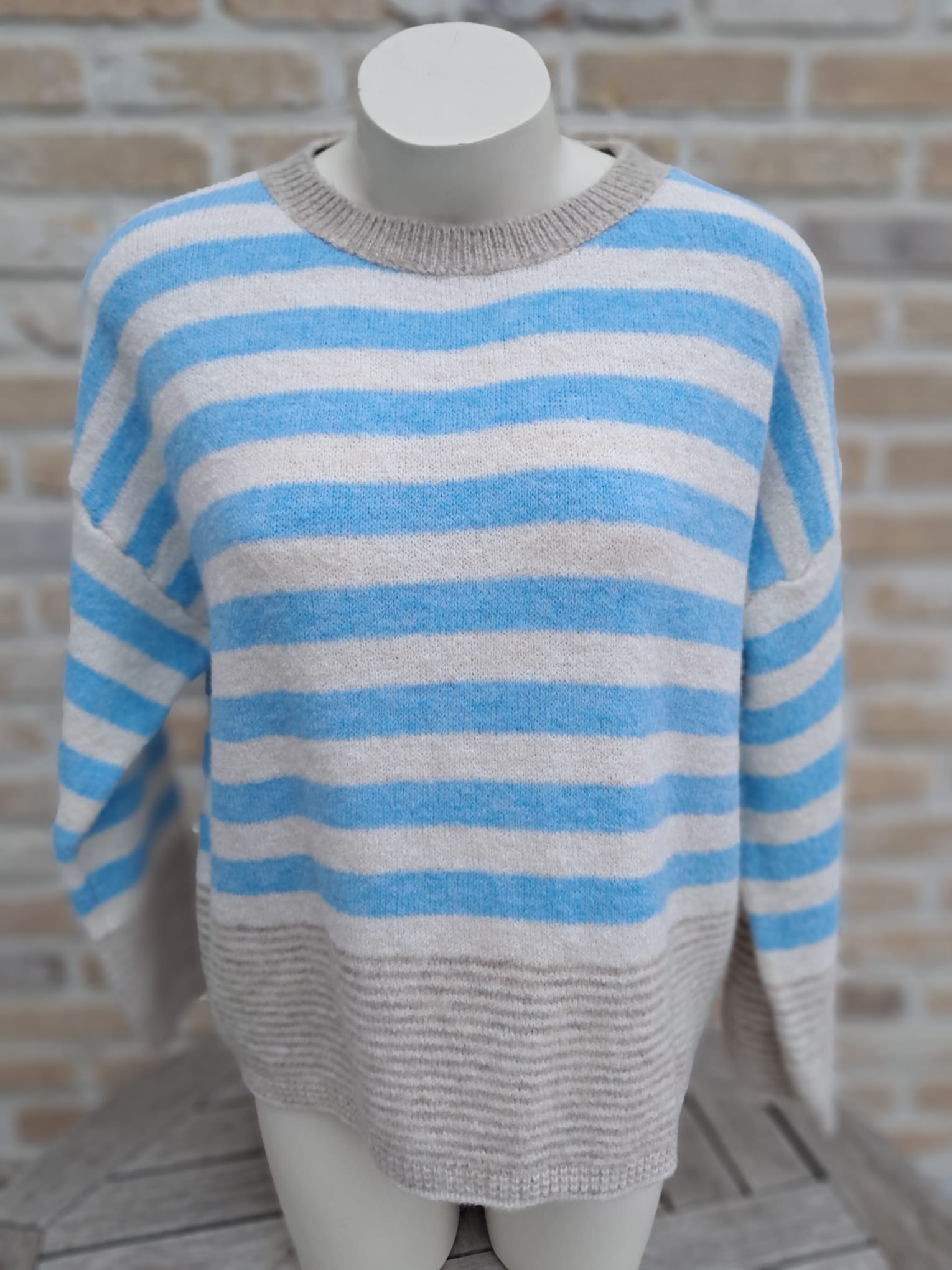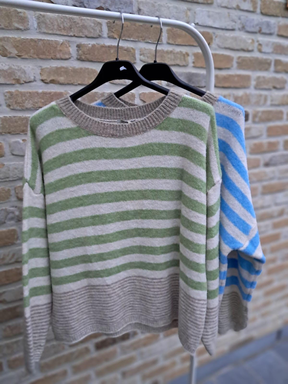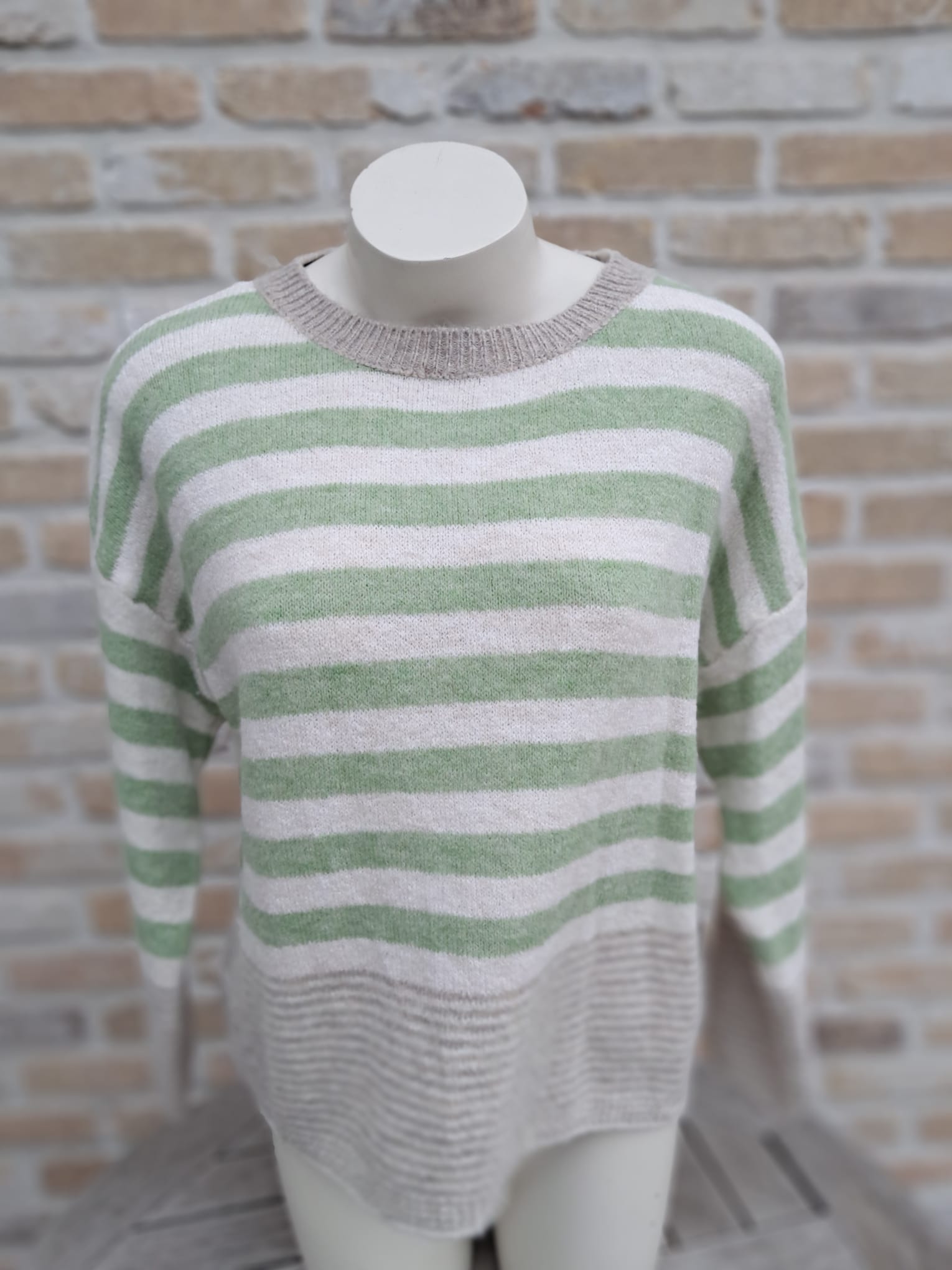 Zachte, warme trui met horizontale strepen.